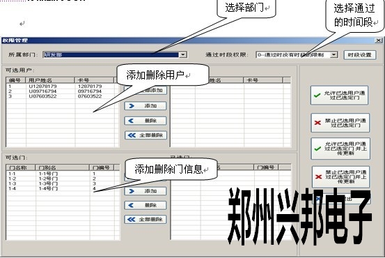 禁止已選用戶通過已選定門:把選擇的用戶的開門權限從數據庫中清除。如果控制器中也存在權限的話,可以再通過上傳功能將權限上傳到控制器中。