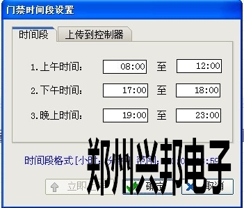3、設(shè)置好要開(kāi)門(mén)的時(shí)間段后點(diǎn)擊‘確定’進(jìn)行保存,點(diǎn)擊‘上傳到控制器’選擇相應(yīng)控制器點(diǎn)擊‘立即上傳’。