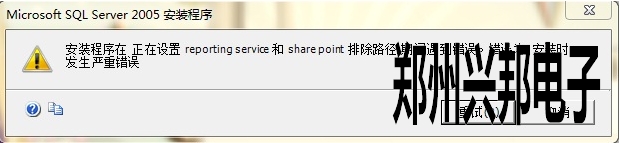 我們公司最新消費機的刷卡消費和數(shù)據(jù)采集,都是通過can軟件來控制和顯示的,采集的信息都通過can軟件設(shè)置存在數(shù)據(jù)庫2005中,所以安裝can軟件,首先要安裝數(shù)據(jù)庫2005,但在安裝數(shù)據(jù)庫2005時,安裝程序可能會在正在設(shè)置reporting和shre point 排除路徑 期間遇到錯誤,遇到的錯誤如圖所示: