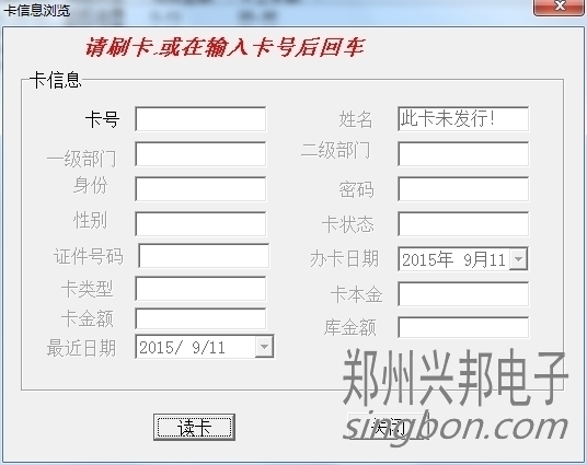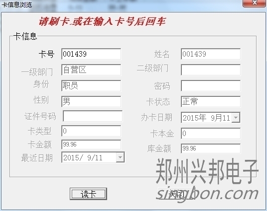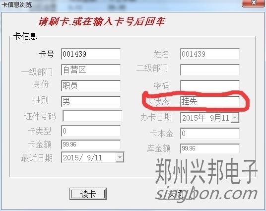 卡片就上面三種狀態(tài),另外一些操作,會造成卡狀態(tài)改變,比如:掛失的卡解掛,就變成消費(fèi)卡;掛失的卡補(bǔ)辦新卡,掛失卡就會變成新卡;消費(fèi)卡被收繳舊卡就變成新卡。新卡在消費(fèi)機(jī)上刷卡會顯示1-Err,消費(fèi)卡會顯示金額,掛失卡會顯示4-Err。